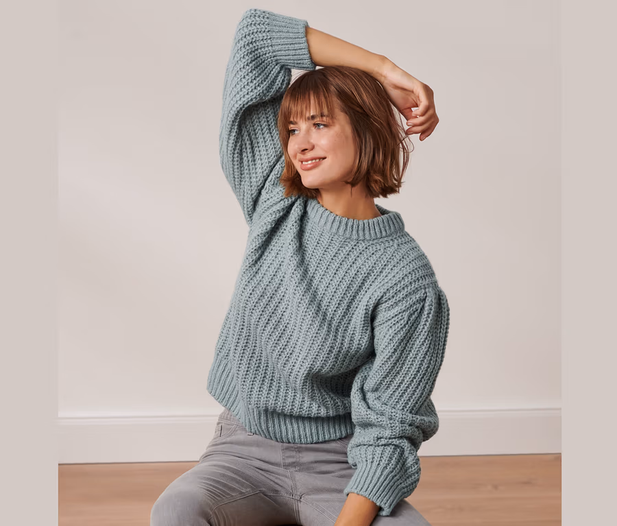 Grobstrick-Pullover mit Wolle, rauchblau
