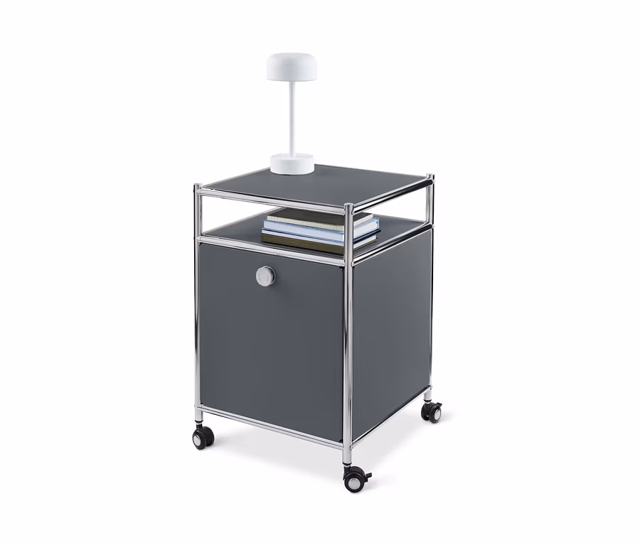 - Rollcontainer mit verchromtem Metallgestell und Knaufgriff