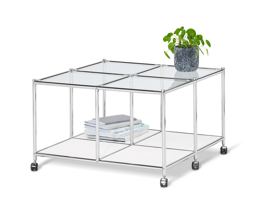 - Mit 4 Rollen, 2 davon feststellbar sowie höhenverstellbaren Kunststofffüssen – Couchtisch kann nach eignenen Wünschen ausgestattet werden