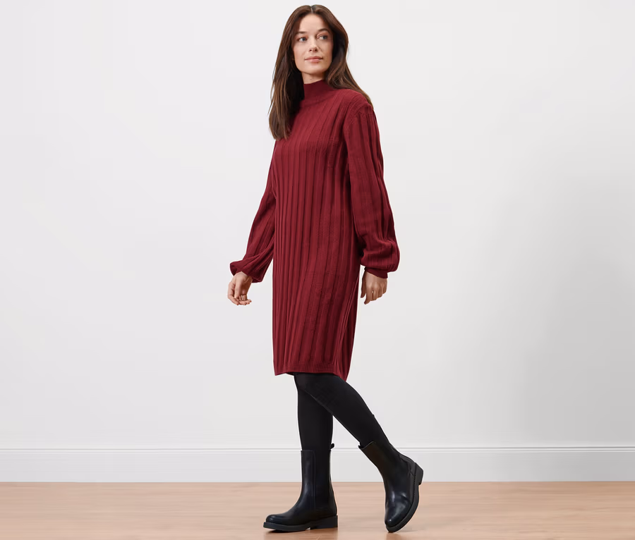 Geripptes Strickkleid mit Stehkragen