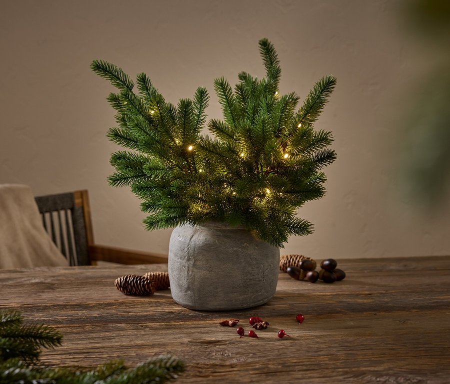 - Hochwertige Tannenoptik, je Zweig 15 LEDs – Lchtfarbe warmweiss
