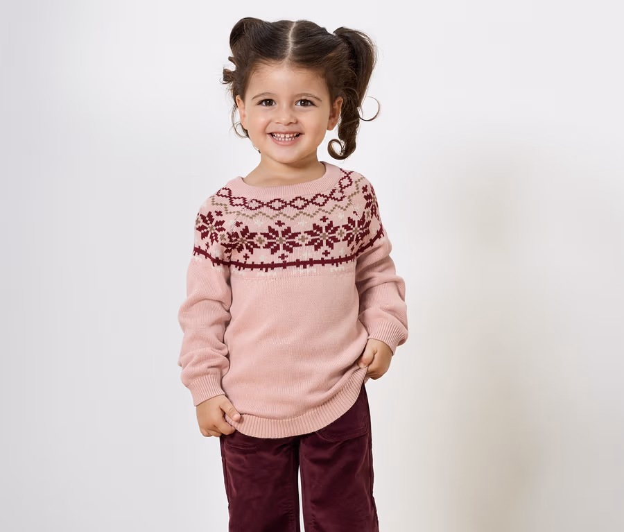 - Rosé mit dunkelrot-cremefarbenem Norweger-Jacquard