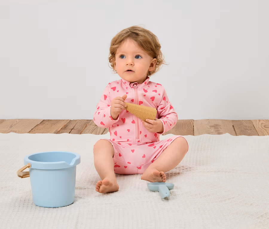 Baby-Einteiler mit UV-Schutzfaktor 50+, Herzen
