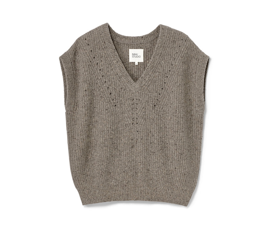 NAH/STUDIO Strick-Pullunder | recycelter Cashmere und Merinowolle, hazelnut melange