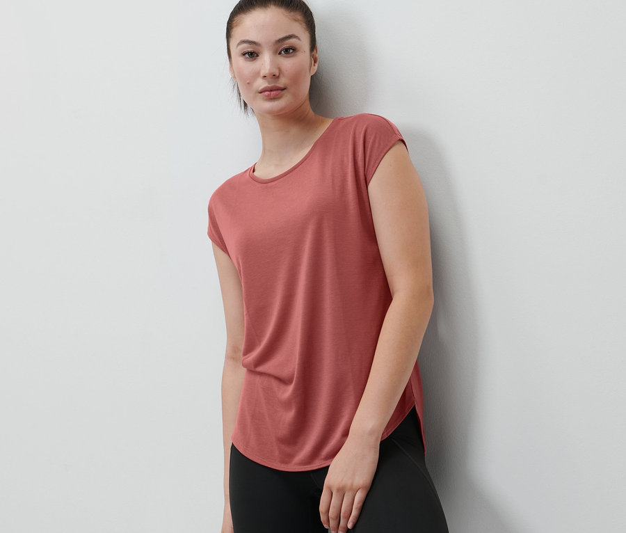 - Damenshirt mit abgerundetem Saum und verlängertem Rücken