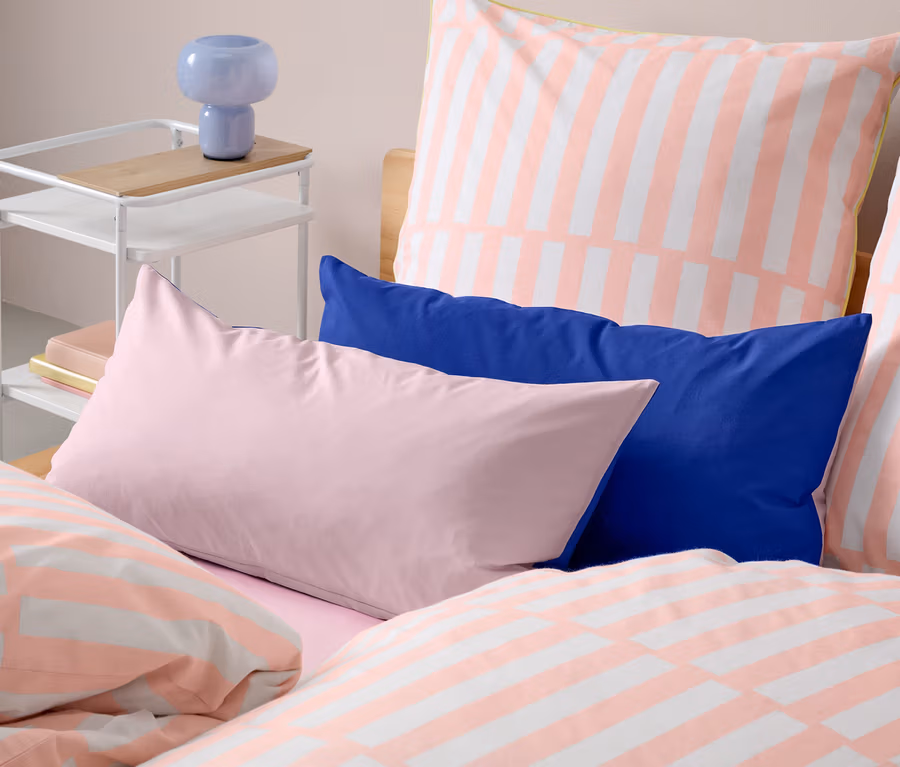 2 Renforcé-Kopfkissenbezüge, dunkelblau und rosa
