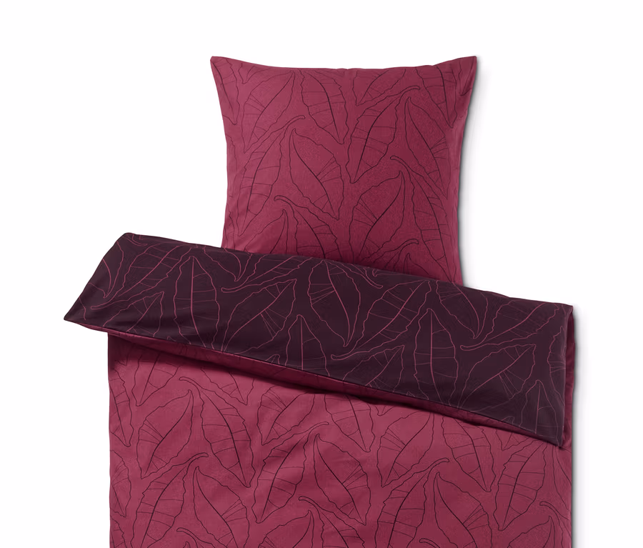 - 1 Seite weinrot mit Blätter-Alloverprint, 1 Seite dunkles Weinrot mit Blätter-Alloverprint