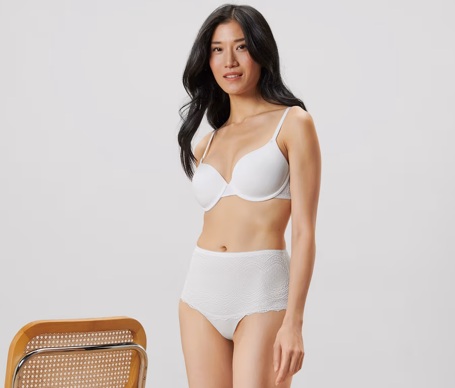 - Leicht figurformendes Material mit zartem Spitzenbesatz im Bauchbereich