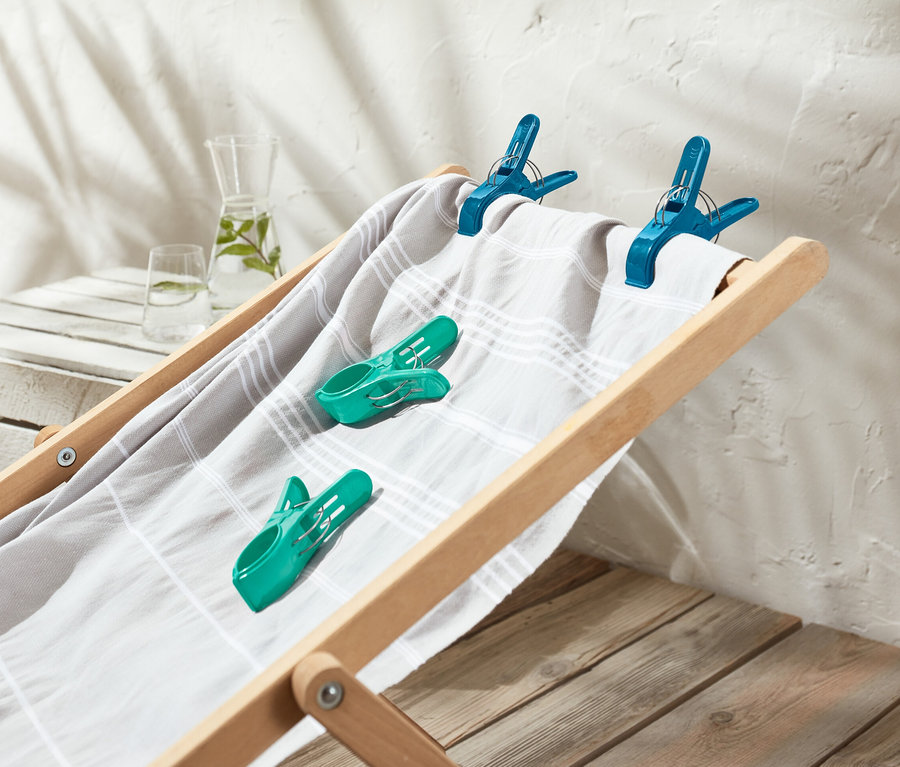 • Zum Befestigen von Badetüchern an Liegestühlen