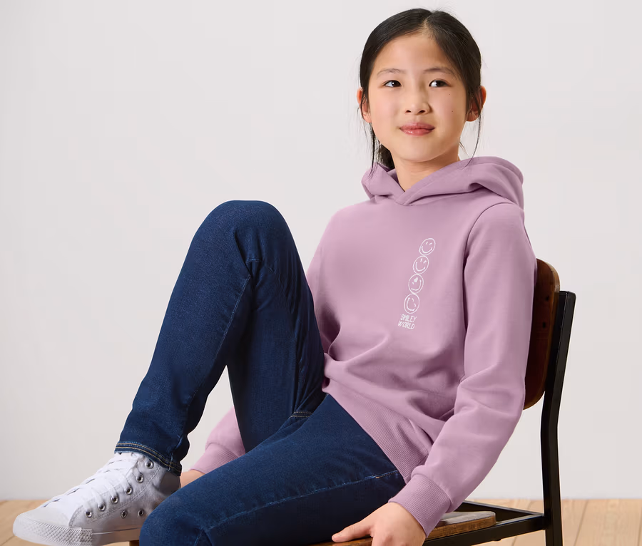 - 80% Baumwolle (aus ökologischem Anbau), 20% Polyester (recycelt)
