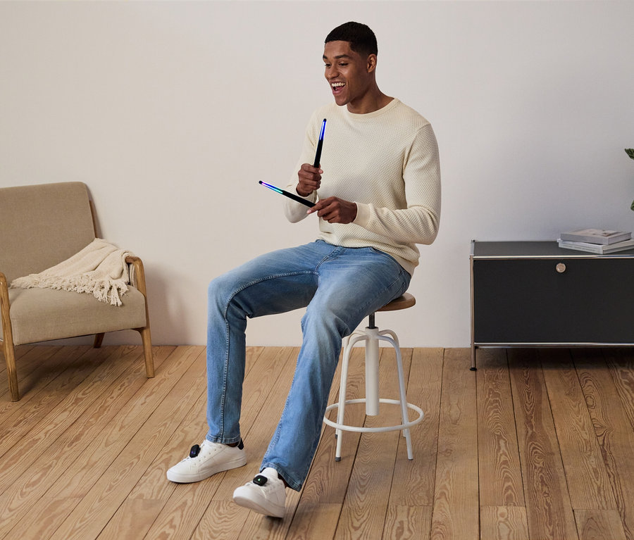 • Leuchtende Drumsticks, LED-Anzeige am Fusssensor und Audiokonverter