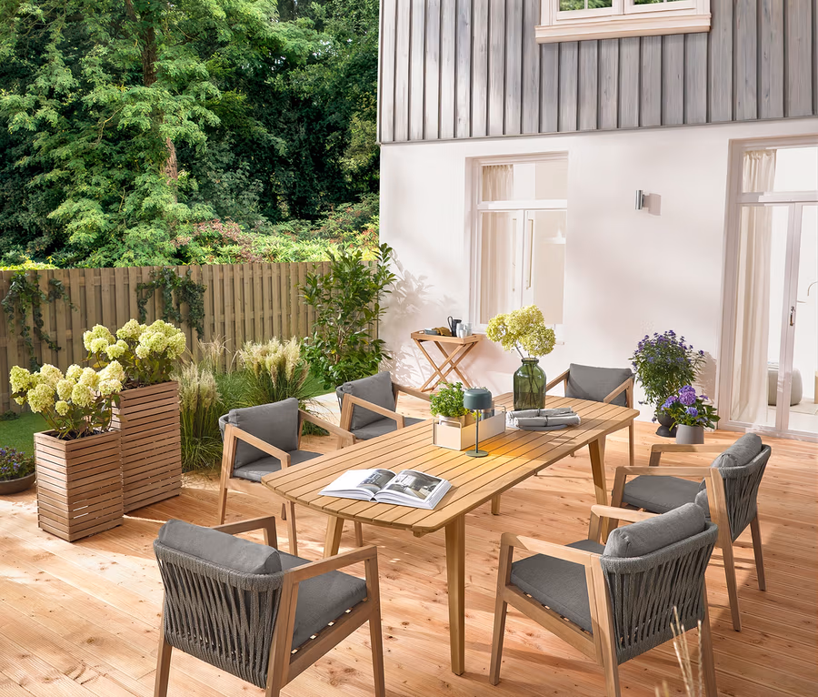 - Aus FSC®-zertifiziertem Akazienholz in heller Teakoptik, geölt