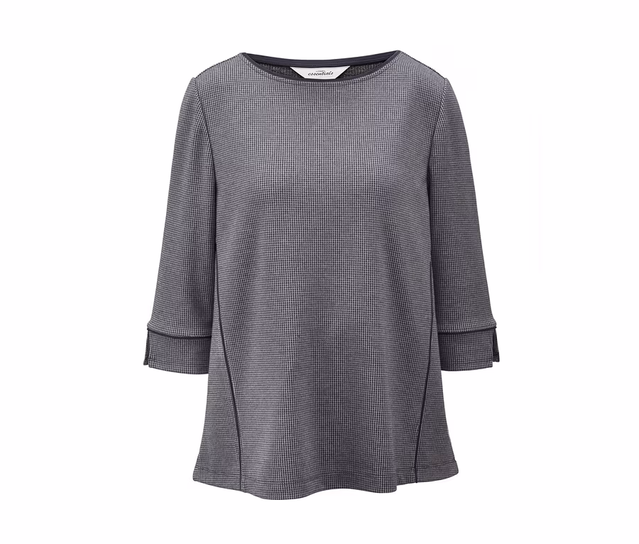 Chic im Hahnentritt: Damen können sich jetzt auch in einem Sweatshirt fein angezogen fühlen, denn der Pullover mit 3/4-Ärmeln ist in dekorativem Hahnentritt designt – einem klassischen Muster, das in der Mode immer angesagt ist und für schlichte Eleganz steht. Der Sweater mit Baumwollanteil ist aus angenehm weicher und elastischer Qualität und hat einen Rundhalsausschnitt.