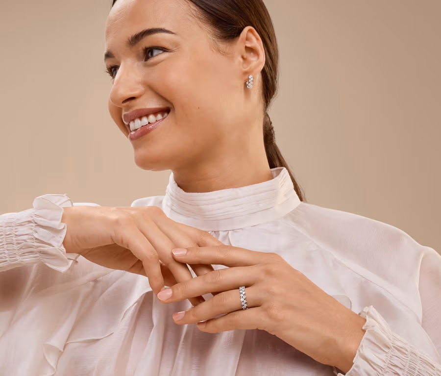 - Besetzt mit einer Doppelreihe von Zirkonia