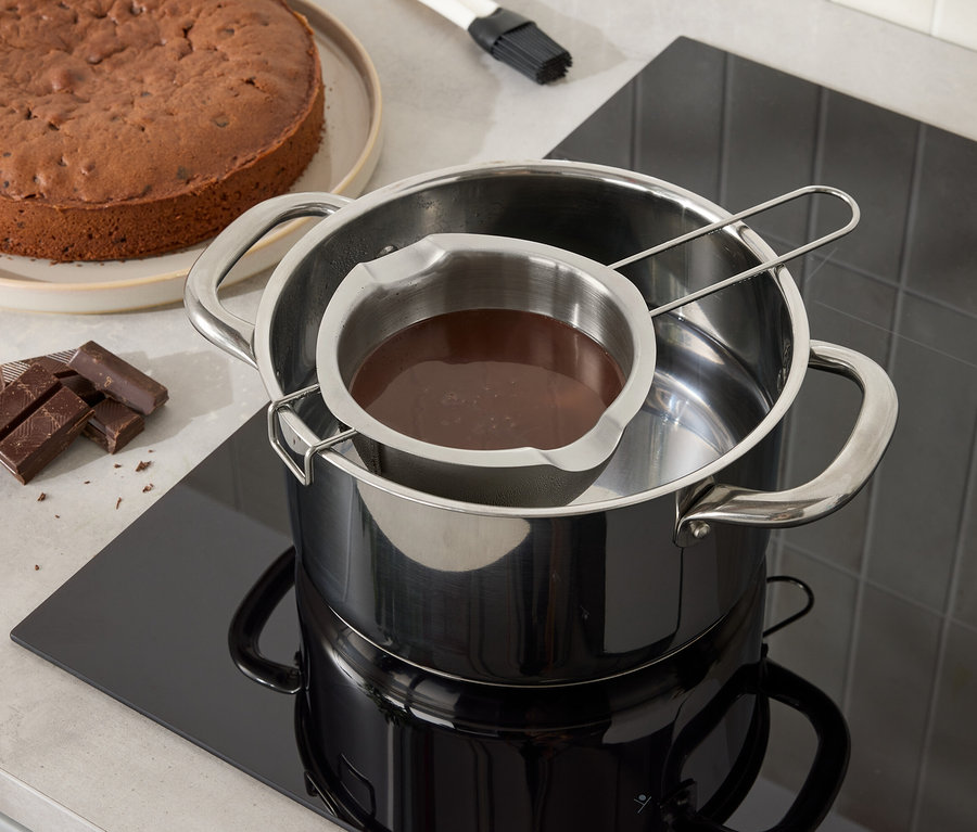 Zum Schmelzen von Schokolade, Butter oder anderen Lebensmitteln, die die gleiche Konsistenz und Temperatur aufweisen