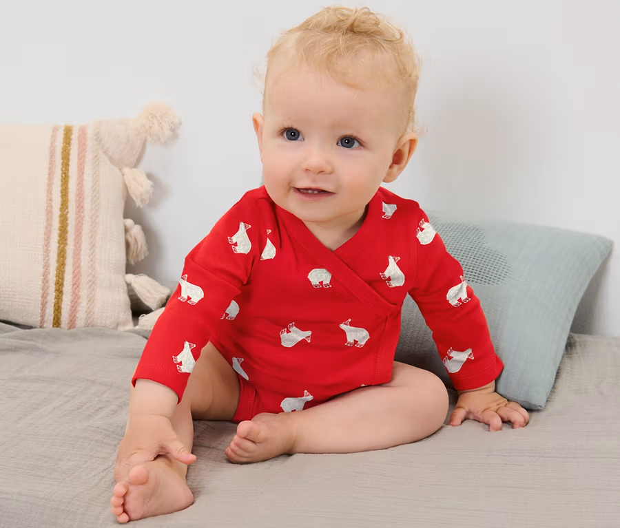 - Gr. 50/56 – 62/68 in Wickelform: Komplett zu öffnen durch Druckknöpfe an der Seite und im Schritt