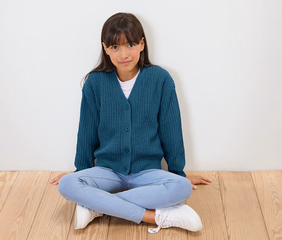 Kinder-Chenille-Strickjacke, blaugrün