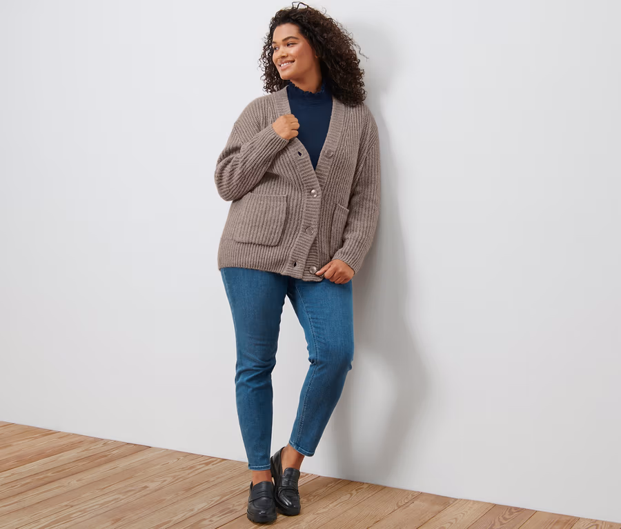 Grobstrick-Cardigan mit Wolle