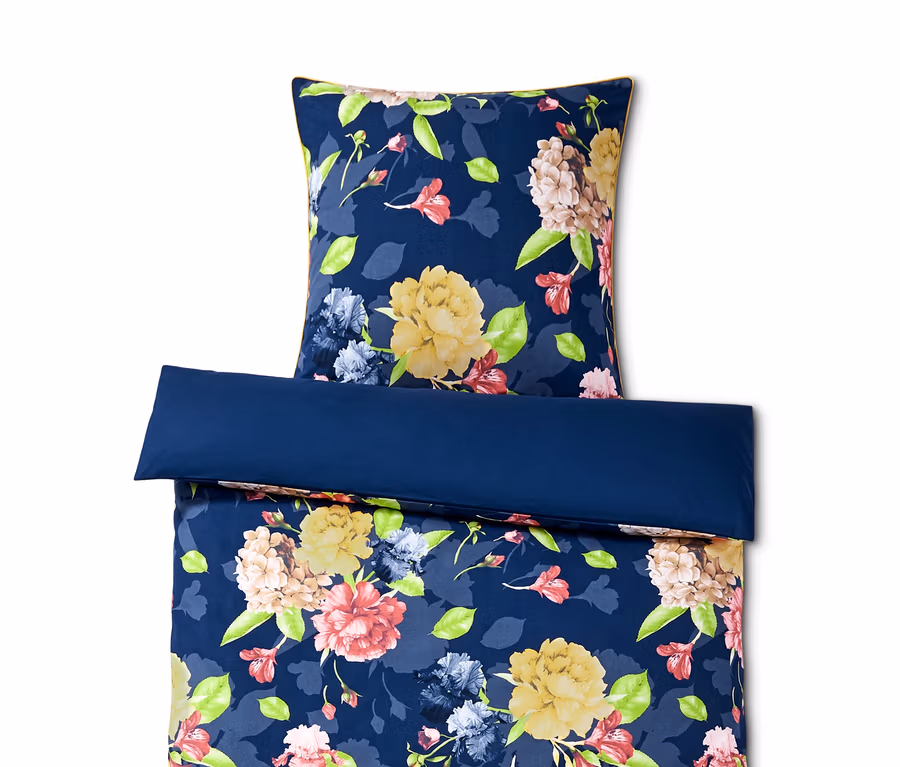 - 1 Seite blau mit mehrfarbigem, floralem Aquarellprint, 1 Seite blau
