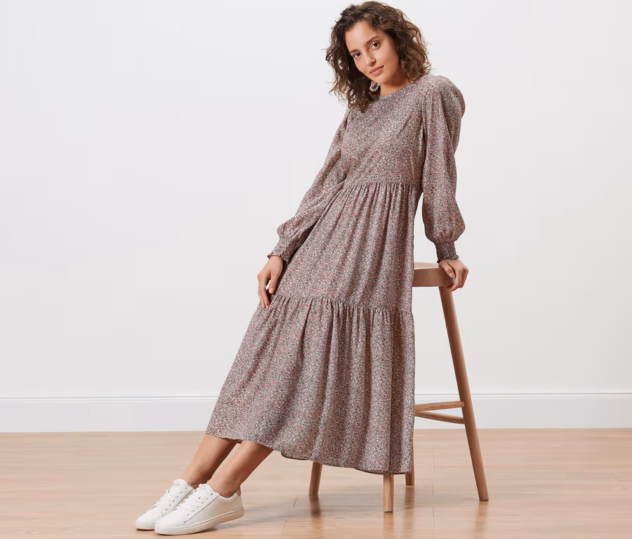 - Dieses Kleid beinhaltet Fasern aus nachhaltigem Holz.
