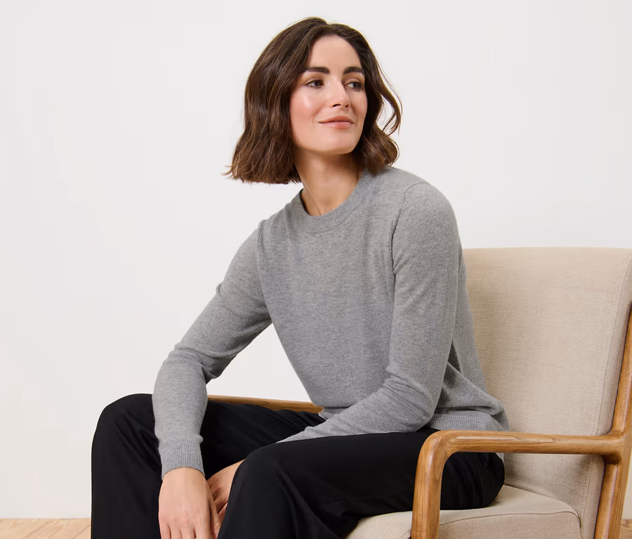 Feinstrickpullover mit Cashmere, grau meliert