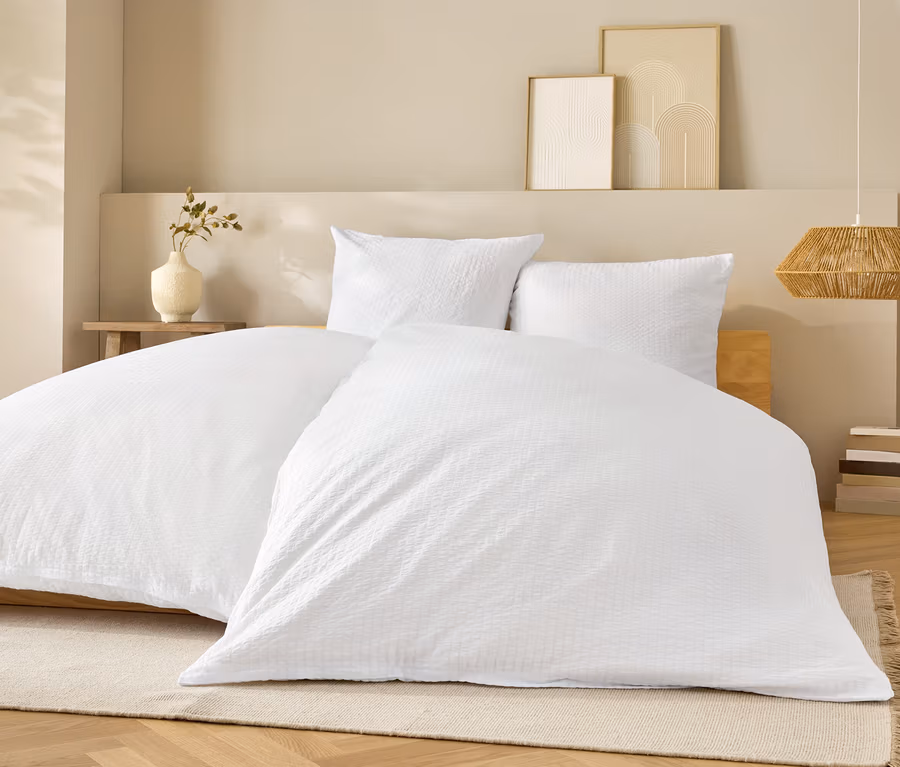 Seersucker-Bettwäsche, weiss, Normalgrösse