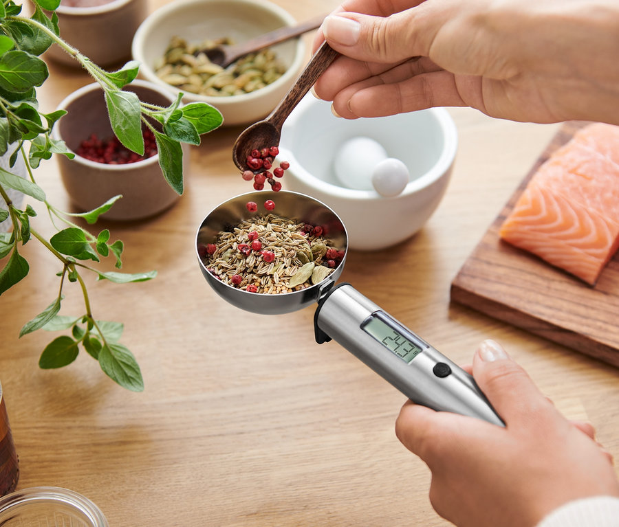 - Präzises Abwiegen von kleinen Mengen – ideal für z.B. Gewürze, Tee, Kräuter, Nahrungsergänzungsmittel oder Mehl