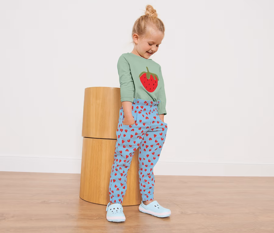 Kleinkinder-Paperbaghose, Erdbeer-Alloverprint