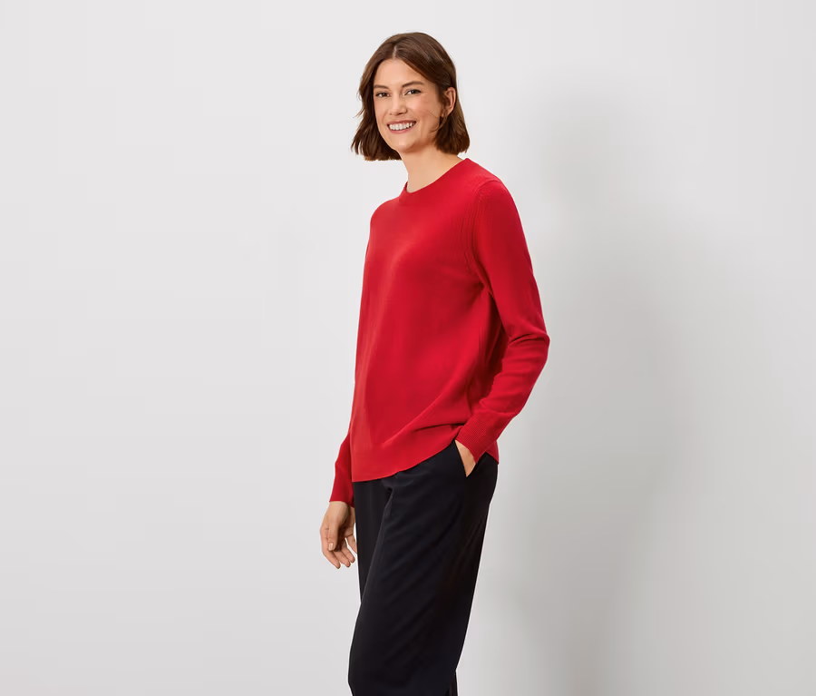 - Hochwertige Strick-Details an Armloch und Schulternaht