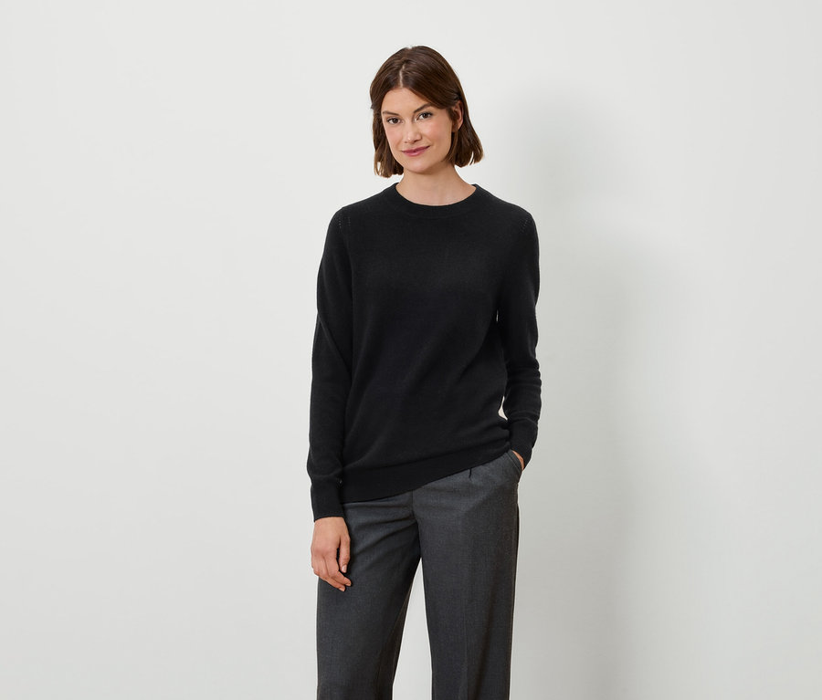 - Hochwertige Strick-Details an Armloch und Schulternaht