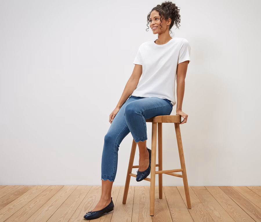 - Beinabschluss mit Wellenkante und Lochstickerei