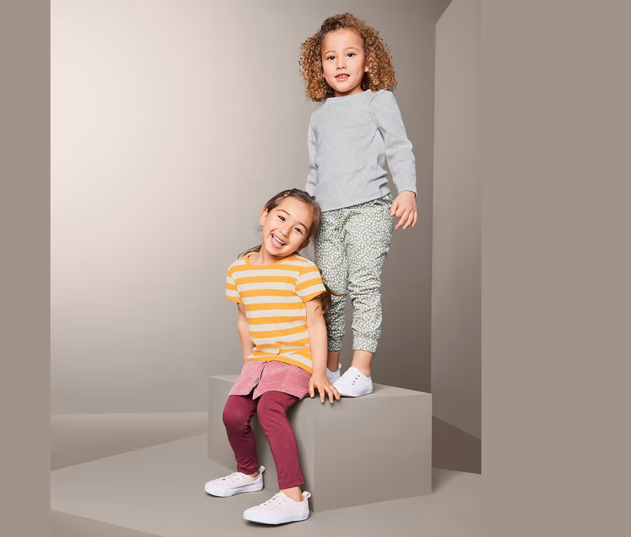 Mit diesem Set Kindershirts hat man zwei für alle Fälle: Das Shirt mit sommerlich-gelben und cremefarbenen Streifen hat kurze Ärmel im klassischen T-Shirt-Style, das grau melierte Shirt hat lange Ärmel. Beide liegen mit ihrem hohen Anteil an nachhaltig angebauter Baumwolle wunderbar weich auf der empfindlichen Haut, Elasthan hält die Oberteile in Form und sorgt für einen perfekten Sitz sowie hohen Tragekomfort – ideal auch für aktive Kids.