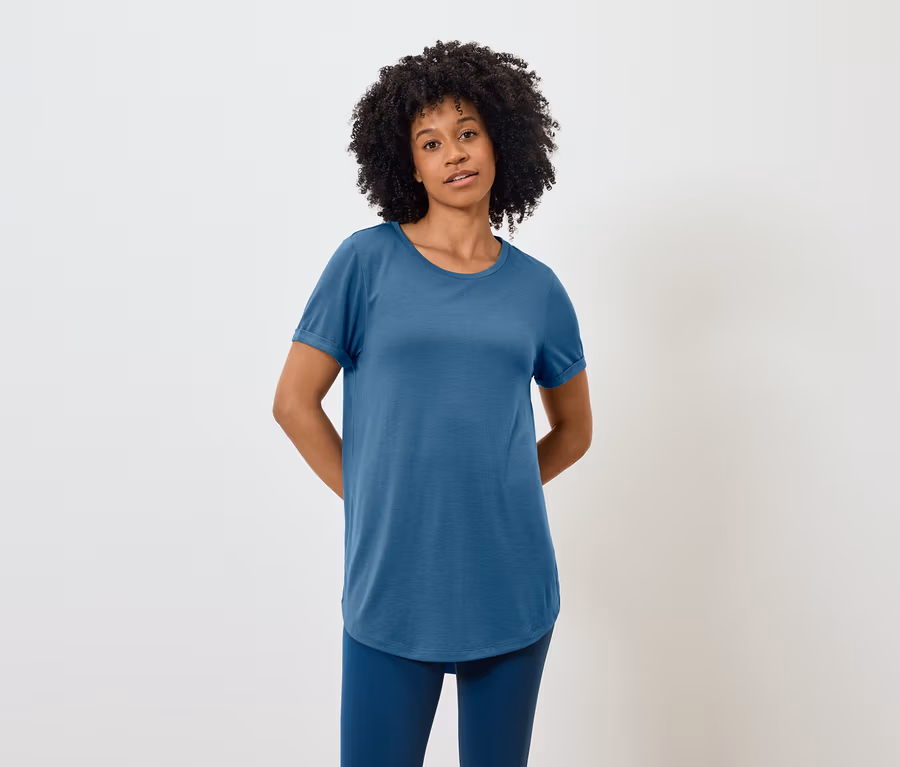 - Abgerundeter Saum und leicht verlängerter Rücken