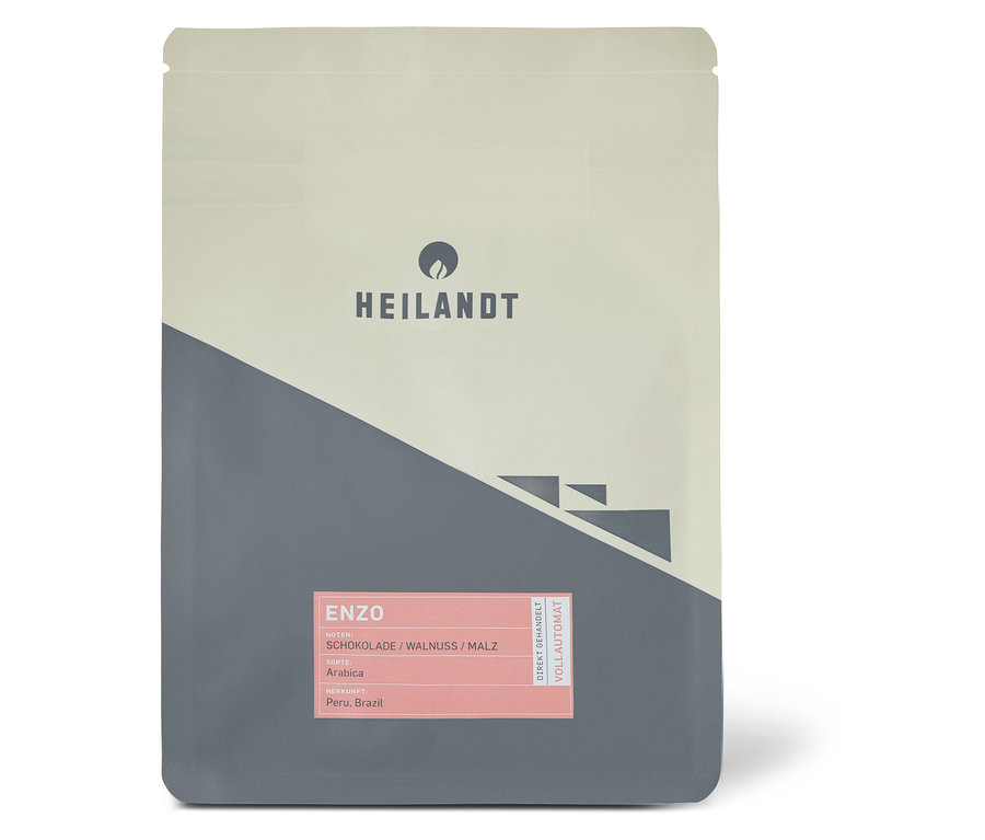 Die Frage beim Enzo war, können wir Italien? Und wie schmeckt Heilandt auf italienisch? Die Idee war, Klassisches neu zu interpretieren und Körper mit Süsse zu verbinden. Und das zu 100% aus Arabica-Bohnen. Herausgekommen ist ein toller Kaffee mit nicht nur viel Fülle, sondern besonders Schokolade und Süsse. Allerdings ohne Bitterstoffe. Eben italienisch ohne zu klassisch zu sein. Egal ob im Vollautomaten oder im Siebträger.