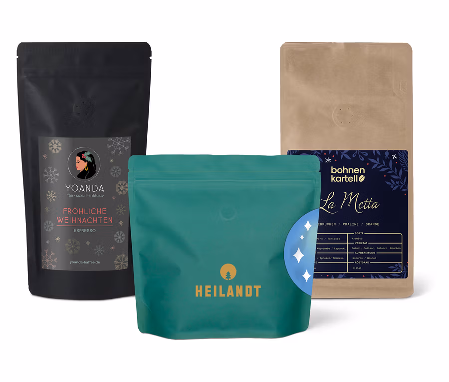 • Set beinhaltet 1 x La Metta Espresso von bohnenkartell, 1 x Weihnachtskaffee Espresso von Heilandt, 1 x Weihnachtsespresso von YOANDA