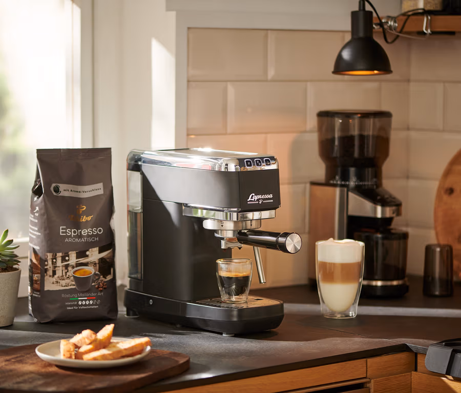 Bereits seit über 35 Jahren stellen die Kaffeeexperten von Tchibo Kaffeemaschinen her. Eine hochwertige Verarbeitung, eine einfache Reinigung dank mitgelieferter Reinigungsbürste und eine integrierte Entkalkungsfunktion machen die Lapressa besonders langlebig.