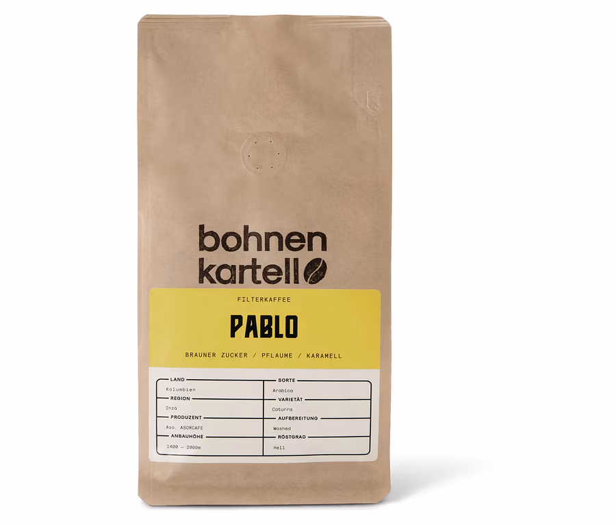 In der Tasse glänzt der Pablo Filterkaffee durch seine im Vordergrund stehenden blumigen Aromen. Wenn ihr den Kaffee geniesst, werdet ihr an braunen Zucker und Trauben erinnert. Unterstützt wird der Geschmack von einer lieblichen Säure.